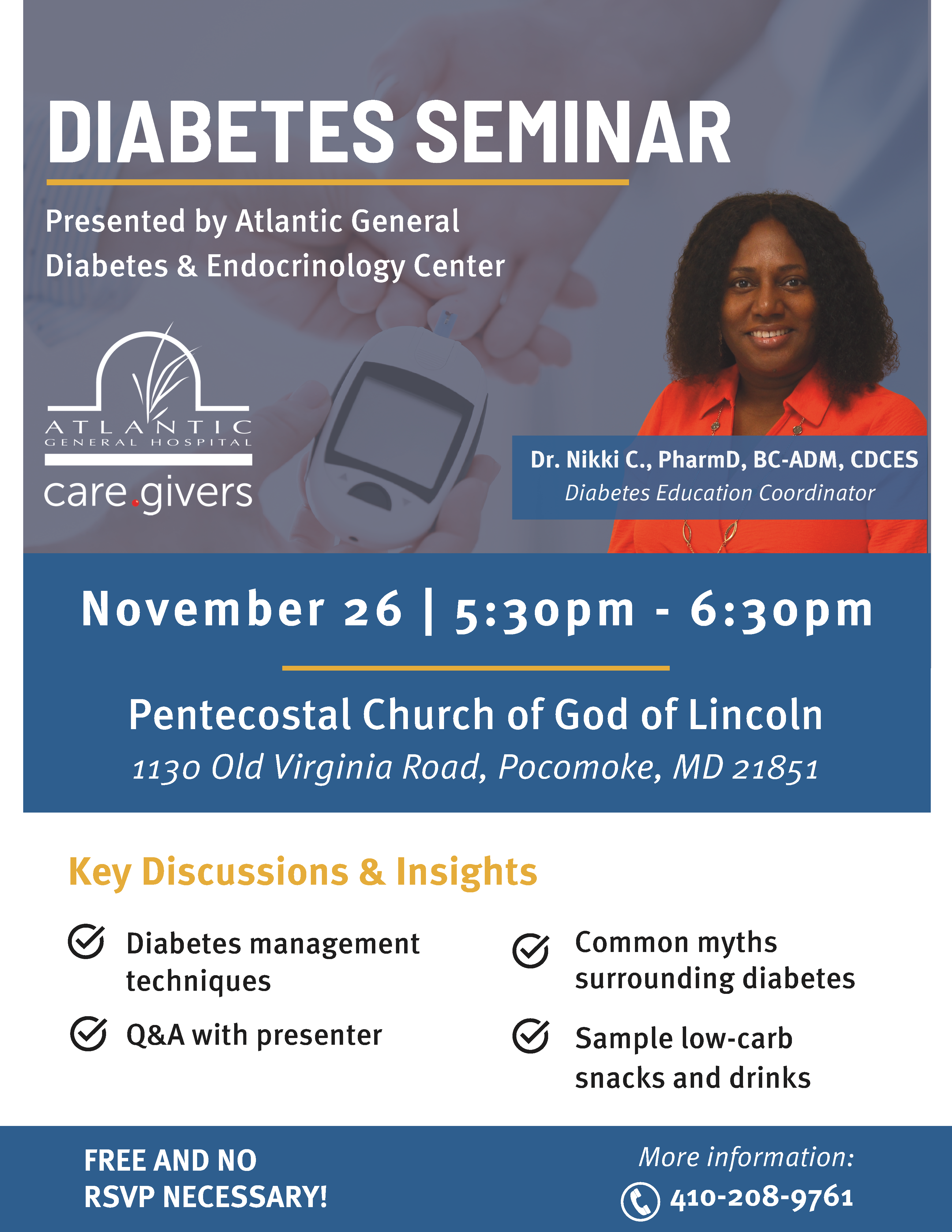 On Tuesday, November 26, join Dr. Nikki in Pocomoke as she discusses various topics related to diabetes, and opens the floor for questions from attendees. This event is completely free and no RSVP is necessary.