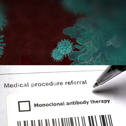Pictured here: Darlene Pierce (center) receives bamlanivimab at the Atlantic General Medical Infusion Center. Ms. Pierce was the first patient to ...